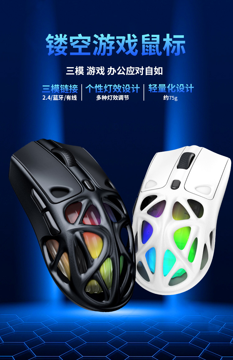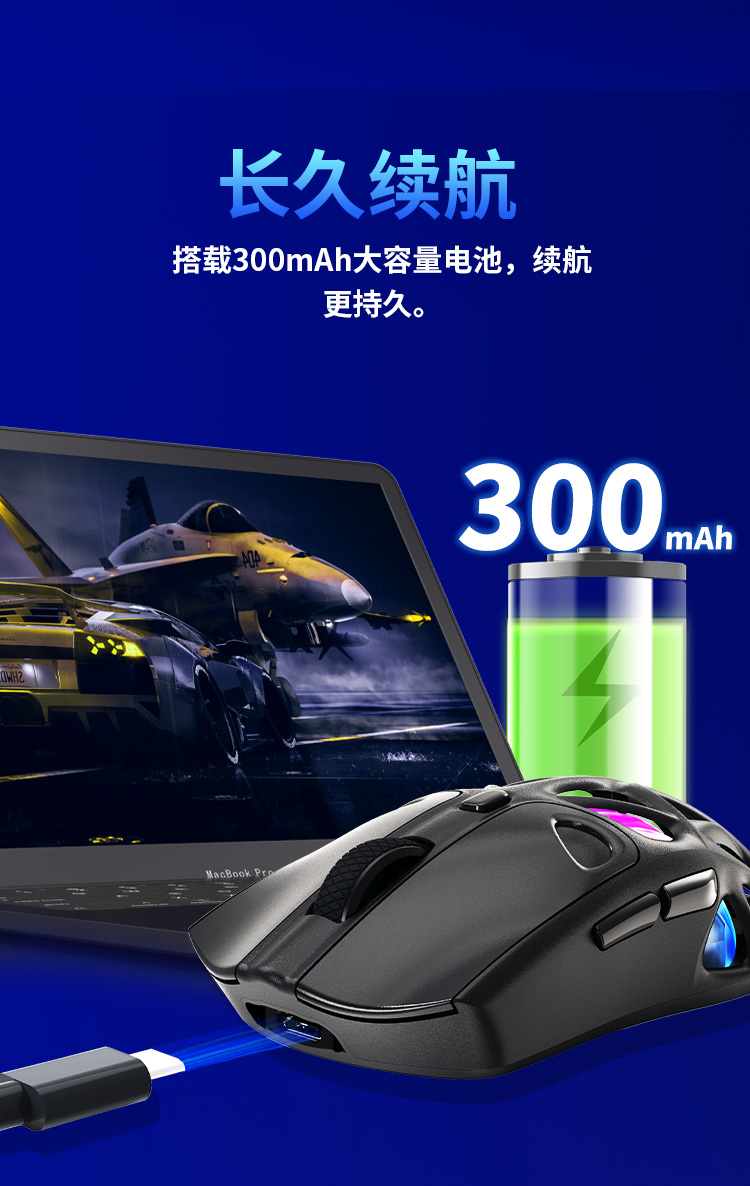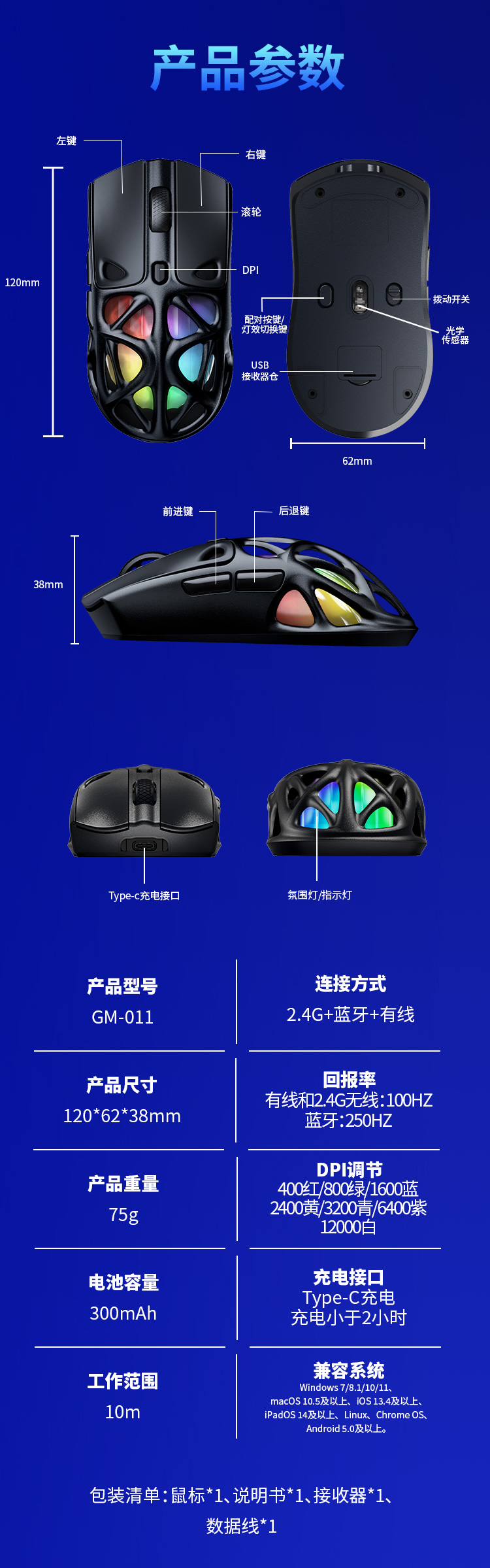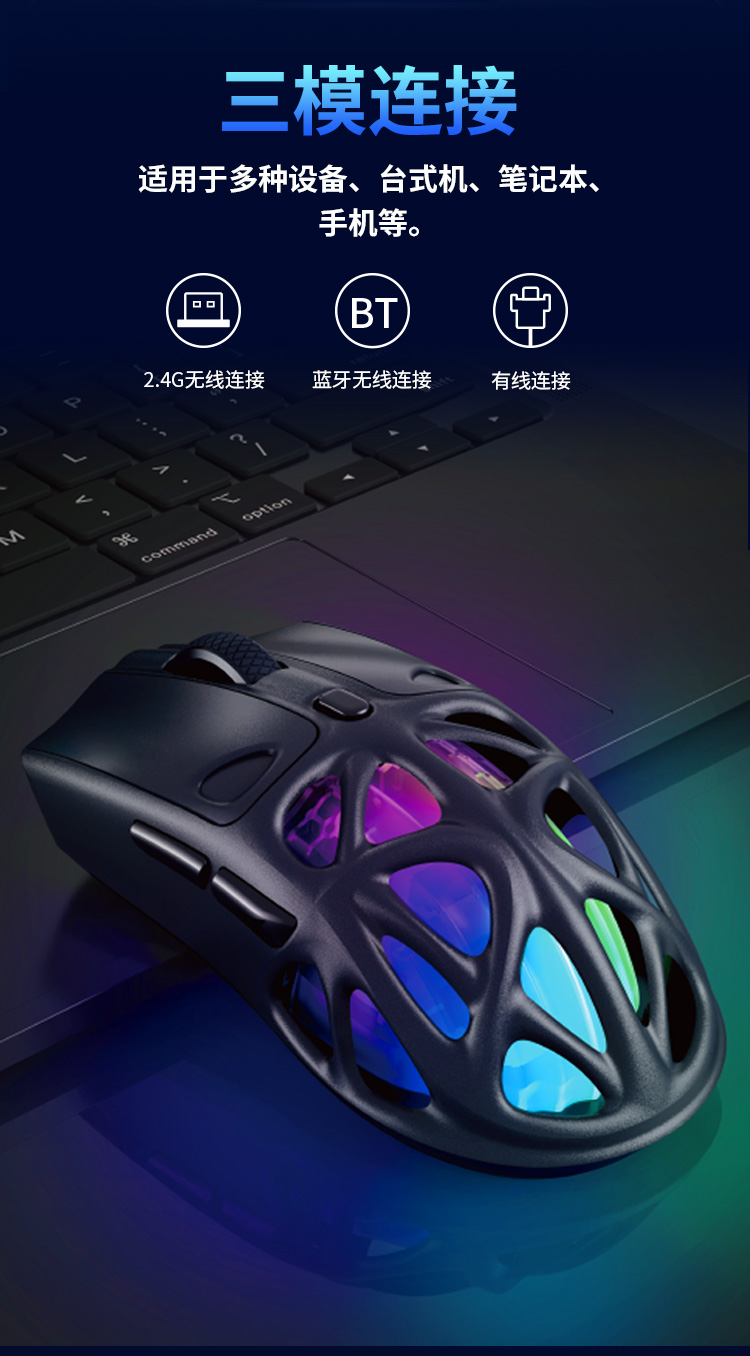- 2.4Ghz+Bluetooth+USB-C三模连接