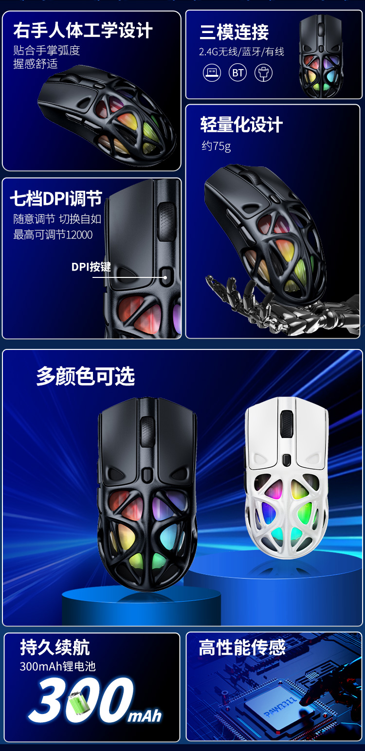 - 传感器:PAW3395或PAW3950
