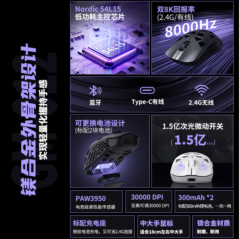 - 光学传感器:PAW3395 或 PAW3950