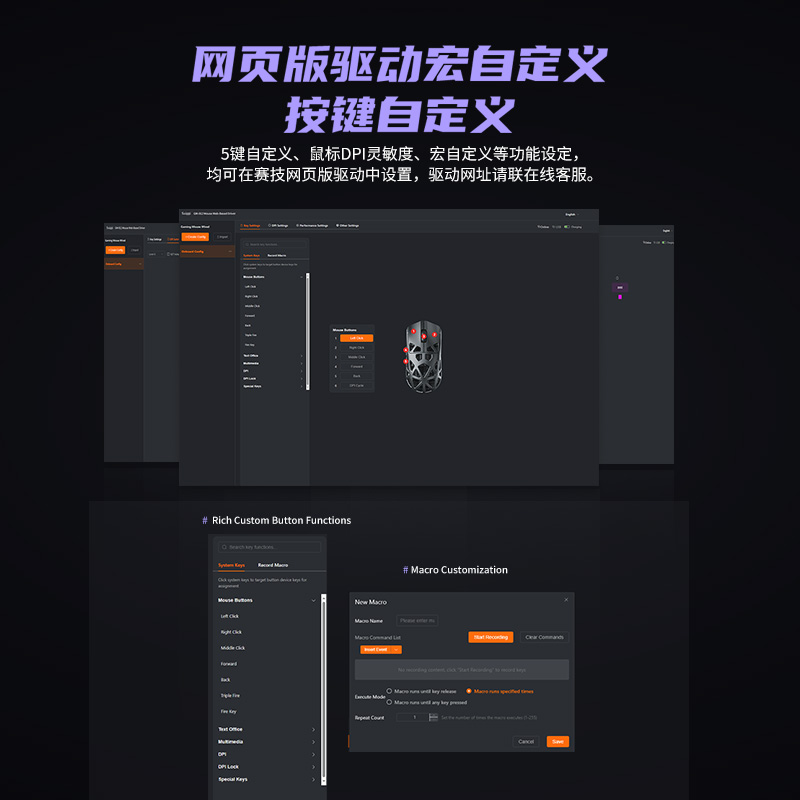 - 配驱动软件可自定义宏