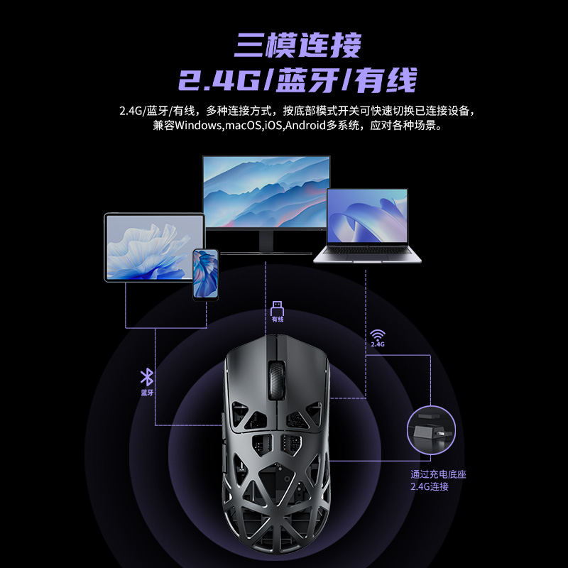 - 三模连接:2.4G+蓝牙+有线